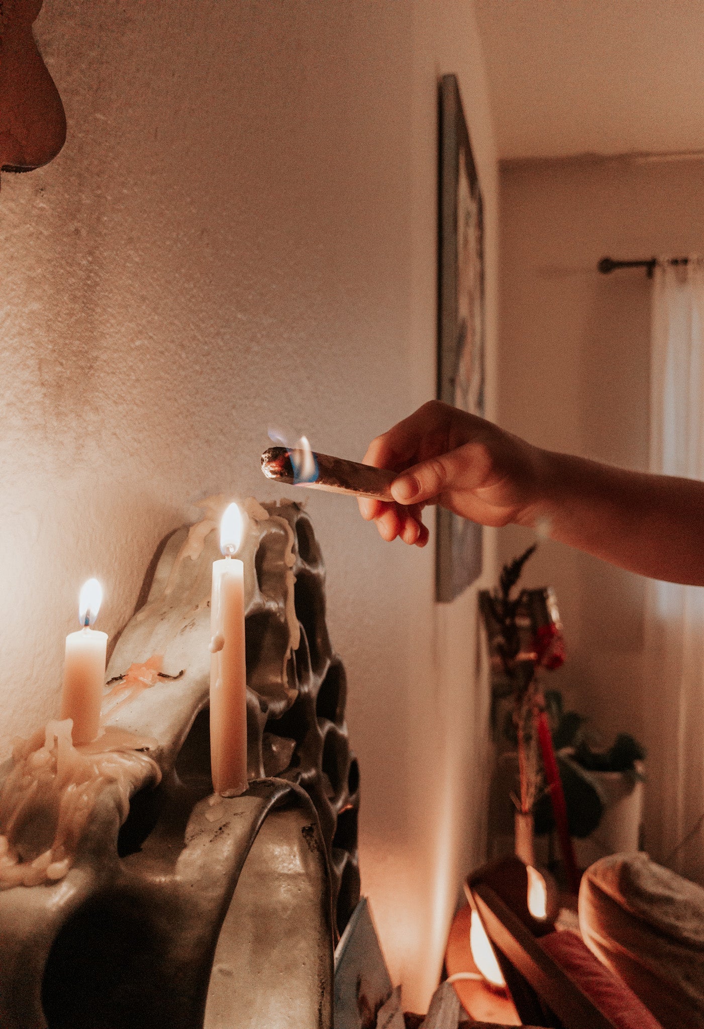 Many people use their altar to hold candles, stones, incense, or meaningful objects — small arrangements that evolve with daily life.