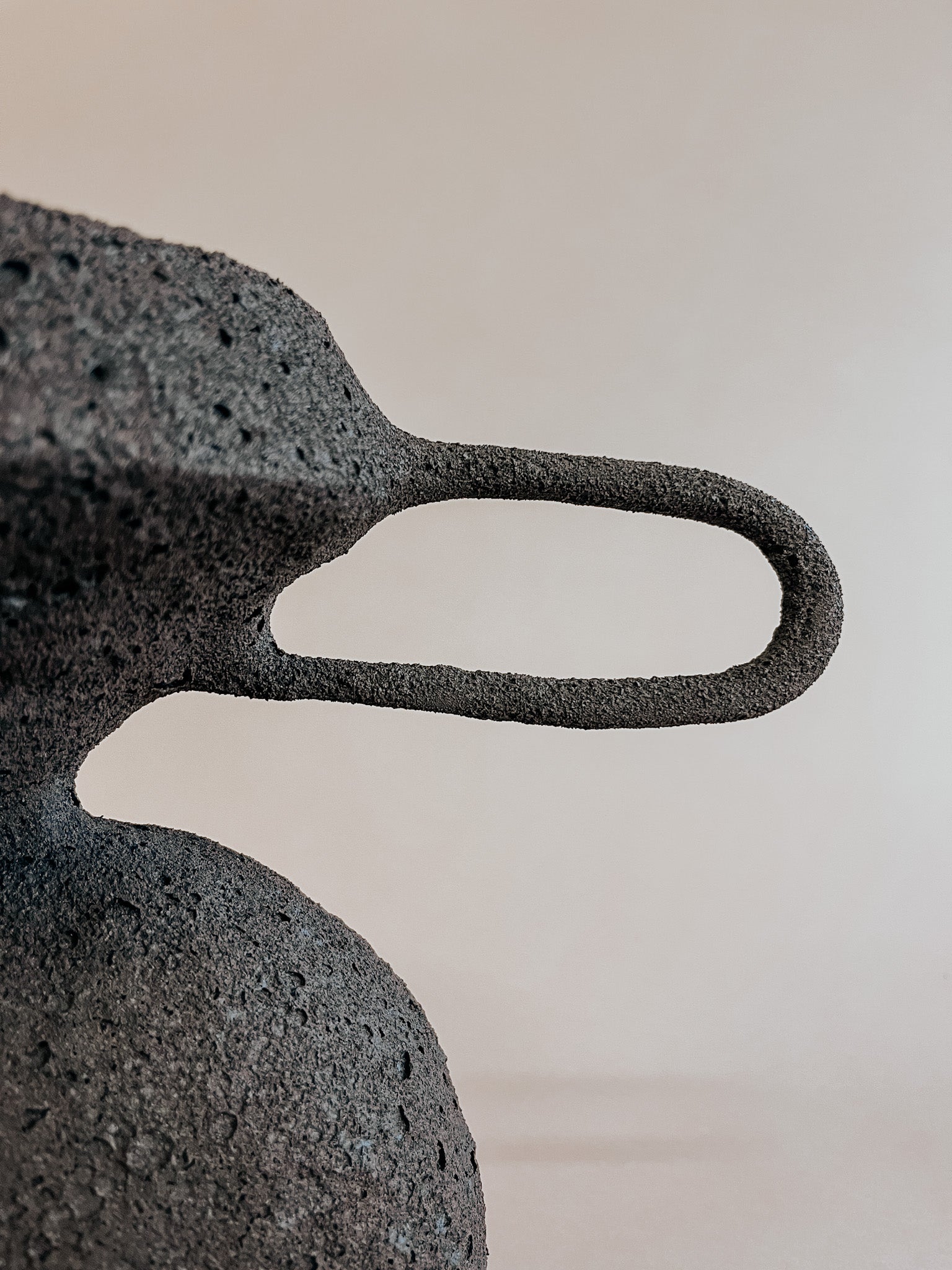 Extended handles stretch outward from the vessel, evoking a sense of balance and openness — as if the piece itself is in the act of offering. Its porous, matte surface carries the marks of hand and fire, emphasizing slowness, imperfection, and care.