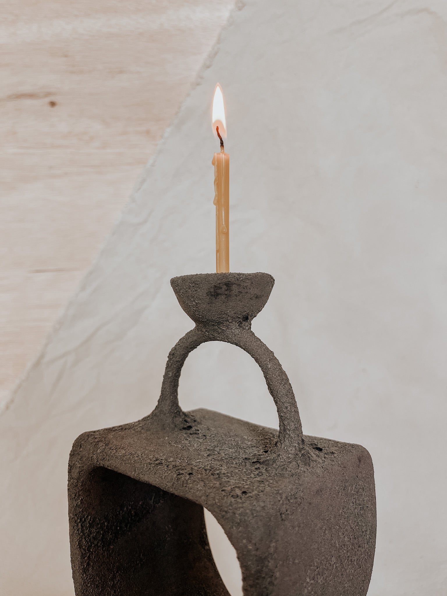 This hand-built ceramic altar is crafted from durable earthenware clay and high-fired to 2160°F for lasting strength. Finished in a black magma glaze, its sculptural form is both modern and timeless — offering a quiet invitation to presence, reflection, and intentional stillness.