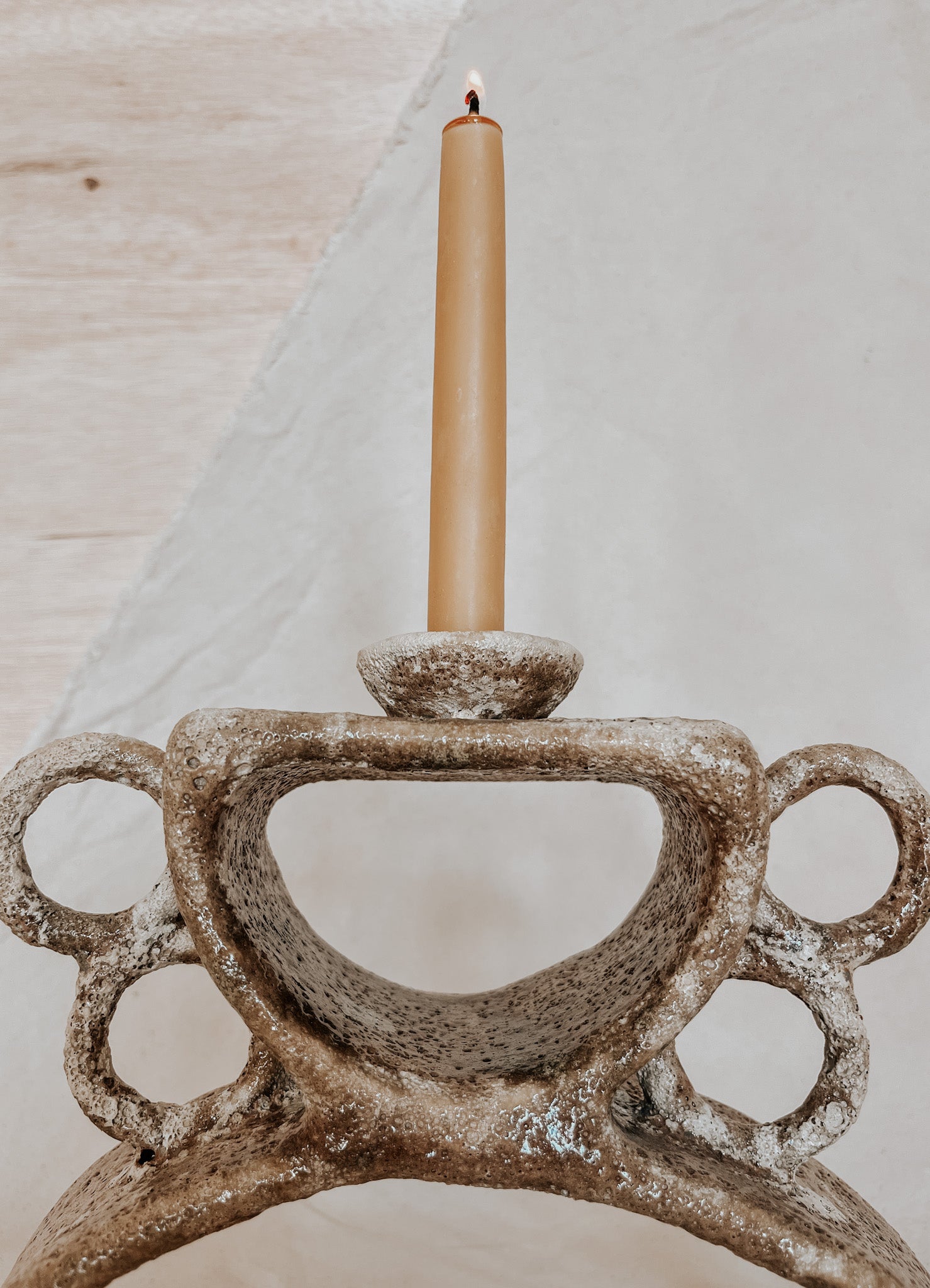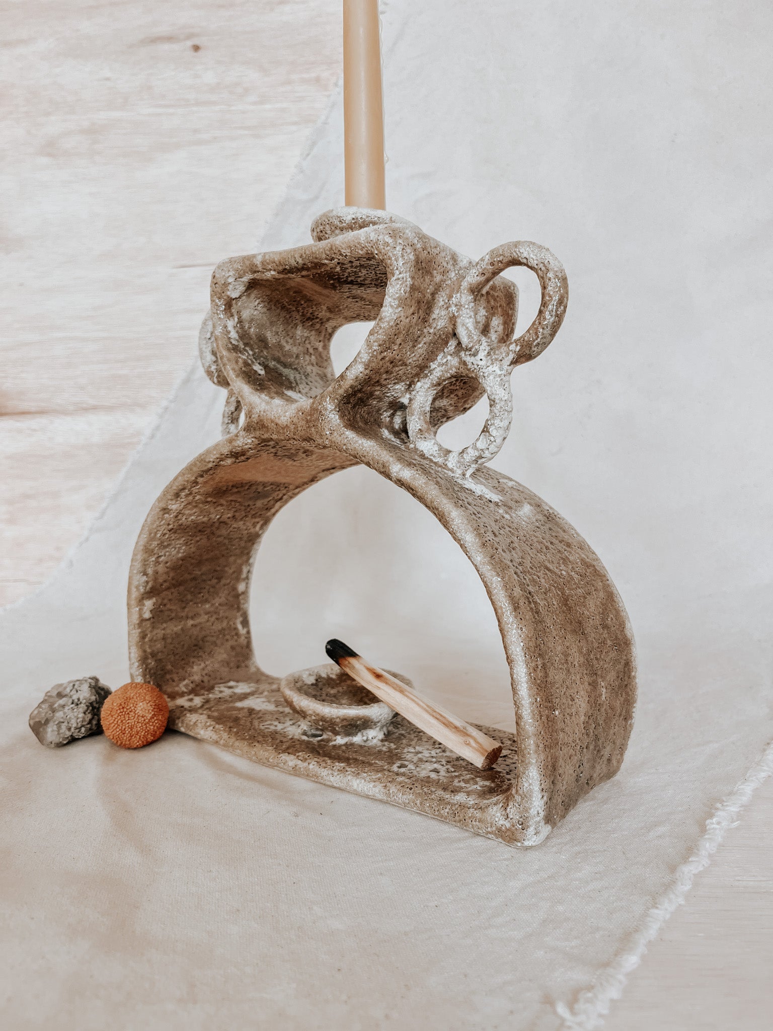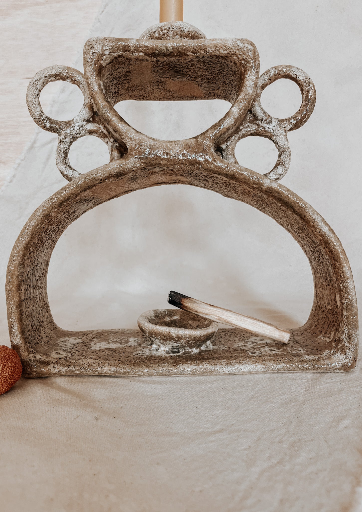 This hand-built ceramic altar is crafted from durable earthenware clay and high-fired to 2160°F for lasting strength. Finished in a magma glaze, its sculptural form is both modern and timeless — offering a quiet invitation to presence, reflection, and intentional stillness.